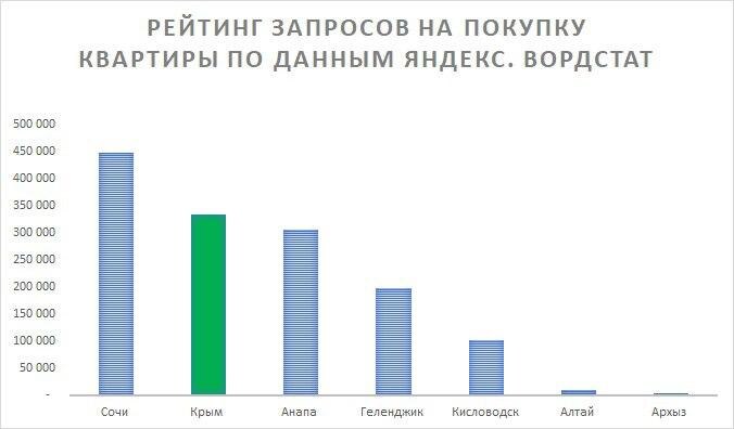 Мы регулярно анализируем поисковые запросы — это один из наших рабочих инструментов. Он показывает реальный спрос раньше, чем это отразится в ценах. Данные Яндекс.Вордстат за январь–ноябрь 2025 года по запросам на покупку квартир в курортных городах. Цифры говорят сами за себя: Топ-5 курортных направлений по числу запросов: 1️⃣Сочи — 447 244 2️⃣Крым — 334 339 3️⃣Анапа — 305 159 4️⃣Геленджик — 196 853 5️⃣Кисловодск — 102 283 ‼️Обратите внимание: Сочи и Крым — это почти 800 000 запросов на двоих. Именно в этих двух направлениях мы работаем каждый день, и мы видим, как цифры из Вордстата превращаются в реальные сделки. Теперь самое интересное — сезонность. Вот что важно понимать покупателю: 📌 Сочи — пик интереса в июле-августе (до 42 603 запросов/мес). Люди приезжают на отдых, влюбляются в город и начинают искать квартиру. Но покупать на пике — значит конкурировать с максимальным числом покупателей. Цены в сезон тоже на максимуме. 📌 Крым — а вот здесь неожиданность. Максимум запр