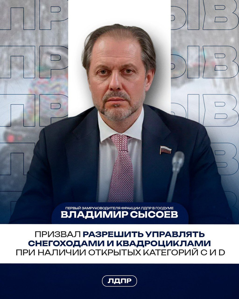 Первый замруководителя фракции ЛДПР в Госдуме Владимир Сысоев рассказал об очередной инициативе, о которой часто говорили люди на приёмах граждан — получение разрешения на управление снегоходами, квадроциклами и другими самоходными машинами. Для многих семей это не просто каприз, а реальная потребность! Всё больше родителей с детьми выезжают в зимние леса, на природу ради активного отдыха. При этом сейчас получить управление А1 могут только те водители, у которых открыты категории B, C, D. 💬Владимир Сысоев предложил рассмотреть возможность получать разрешение категории A2 при наличии открытых категорий C и D. Он напомнил, что часто у людей есть категория С, но нет категории В, хотя она более профессиональная. «Рад слышать положительную реакцию от коллег на эту инициативу. Надеюсь, что данное изменение будет проработано и внесено в ближайшее время», — отметил Владимир Сысоев.