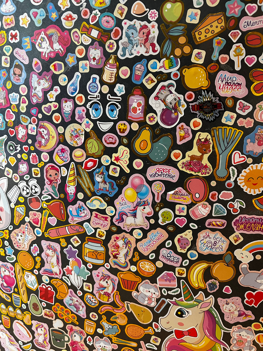 2. Развитие моторики. Отдирать наклейки от подложки и ровно (или криво) приклеивать — отличная тренировка.
