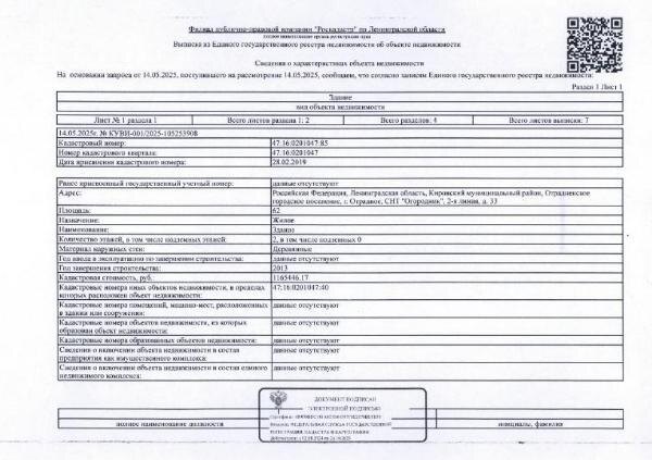 имущество: Земельный участок общ. пл. 781 кв.м., кадастровый № 47:16:0201047:40 и расположенный на нем жилой дом общ. пл. 62 кв.м., кадастровый № 47:16:0201047:85, по адресу: Ленинградская область, Кировский мун. район, Отрадненское г.п., Отрадное, СНТ "Огородник", 2-я линия, д. 33. Канал: Госземля Ленинградская область Область: обл Ленинградская Кировский мун. район Район: Отрадненское г.п. Населенный пункт: Отрадное, СНТ "Огородник", 2-я линия, д. 33 Локация: Смотреть на карте ВРИ: Жилая застройка Кадастровый номер: 47:16:0201047:40 Кадастровая стоимость: - Вид сделки: Продажа Площадь: 781 м² Начальная цена: 3655000.00 руб. Дата завершения: 09.04.2026 Подробнее: ГИС ТОРГИ #госземля #земляотгосударства #земля #земельныйучасток #земельныеторги #торги #аукцион #продажаземли #продажа #ленинградскаяобласть