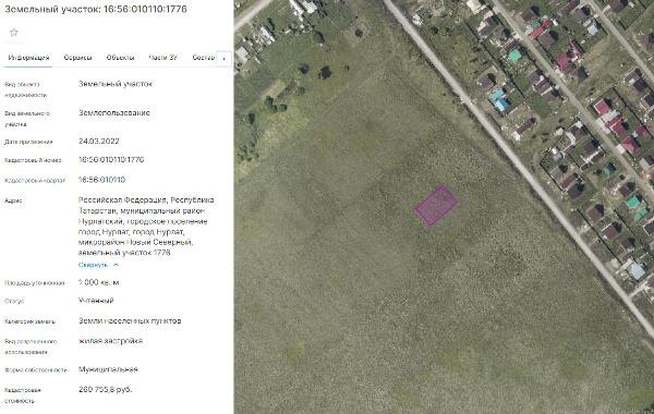 Название: Земельный участок из земель населенных пунктов с кадастровым номером 16:56:010110:1776 площадью 1000 кв.м., расположенного по
