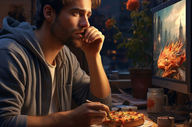 Недавно проведенные исследования показали, поедание различных вкусностей за компьютерным столом чрезвычайно опасно — для наших желудков и здоровья, разумеется. Всё дело как в психологии, так и в микробиологии. С точки зрения мозга у вас происходит сенсорная депривация. Это когда ваше внимание направлено на экран, вследствие чего идёт обработка информации, а вовсе не наслаждение вкусовыми ощущениями. Происходит отключение сигналов сытости. То есть вы элементарно будете переедать! А главное, у вас сформируется условный рефлекс по типу