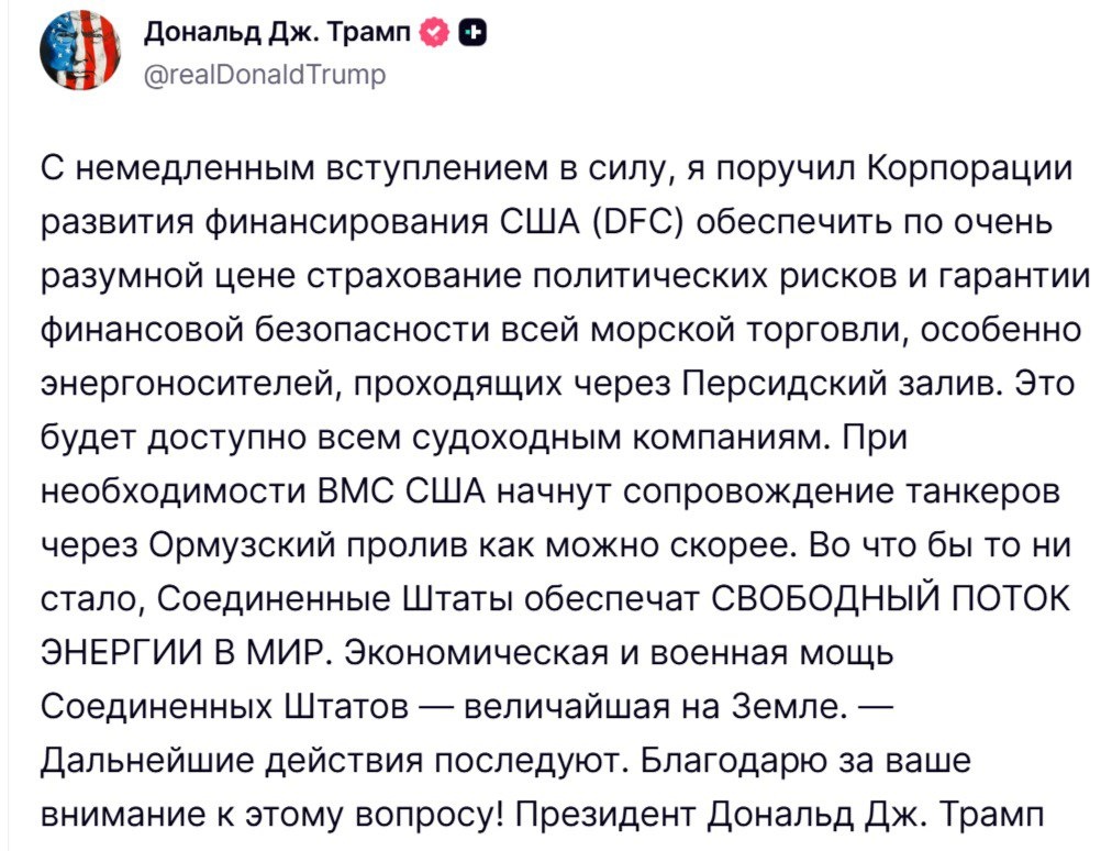 Контраргумент для всех адептов того, что США выгодно перекрытие пролива