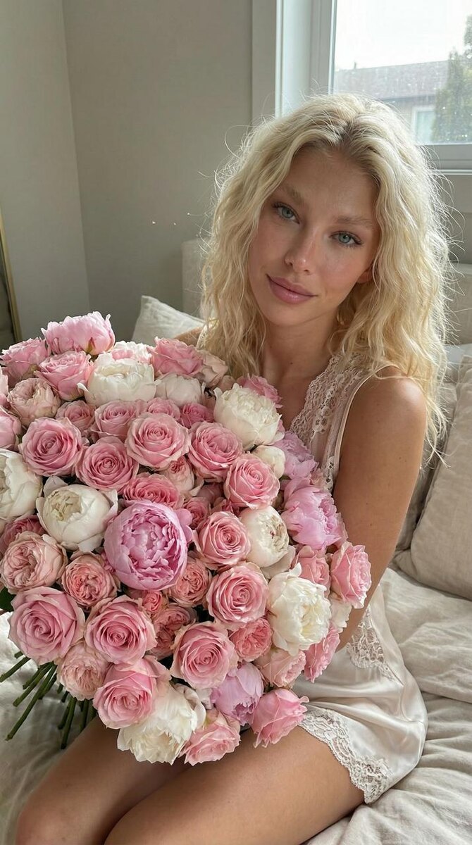 ✨✨✨✨✨✨✨✨✨✨ пионовидные розы ✨ зайди в бот @aibudka_bot ✨ отправь фото (где хорошо видно лицо) и открой редактор ✨ выбери нейросеть Nano Banana (обязательно PRO-режим для топ-результата) ✨ установи качество 2К, соотношение сторон 9:16 (или другой формат по вкусу) ✨ вставь этот промпт (просто нажми, чтобы скопировать): Используй лицо с моей референс-фотографии (face reference), сохрани узнаваемость на 100% : не меняй овал лица , форму носа , форму бровей, губы, цвет глаз, длину волос и цвет волос .Создай уютное романтичное фото девушки в домашней обстановке ;на кровати с большим букетом пионовидных роз(более 1000 штук) который девушка держит нежно. Цветы должны выглядеть свежими и пышными. Образ должен передавать нежность, расслабленность и лёгкую игривость.Одежда: короткий нежный пеньюар. Причёска: длинные распущенные волосы, слегка небрежные, обрамляющие лицо.Макияж: естественный, с акцентом на глаза (лёгкие тени, объёмные ресницы) и нежные розовые губы. Цветы должны выглядеть свежим