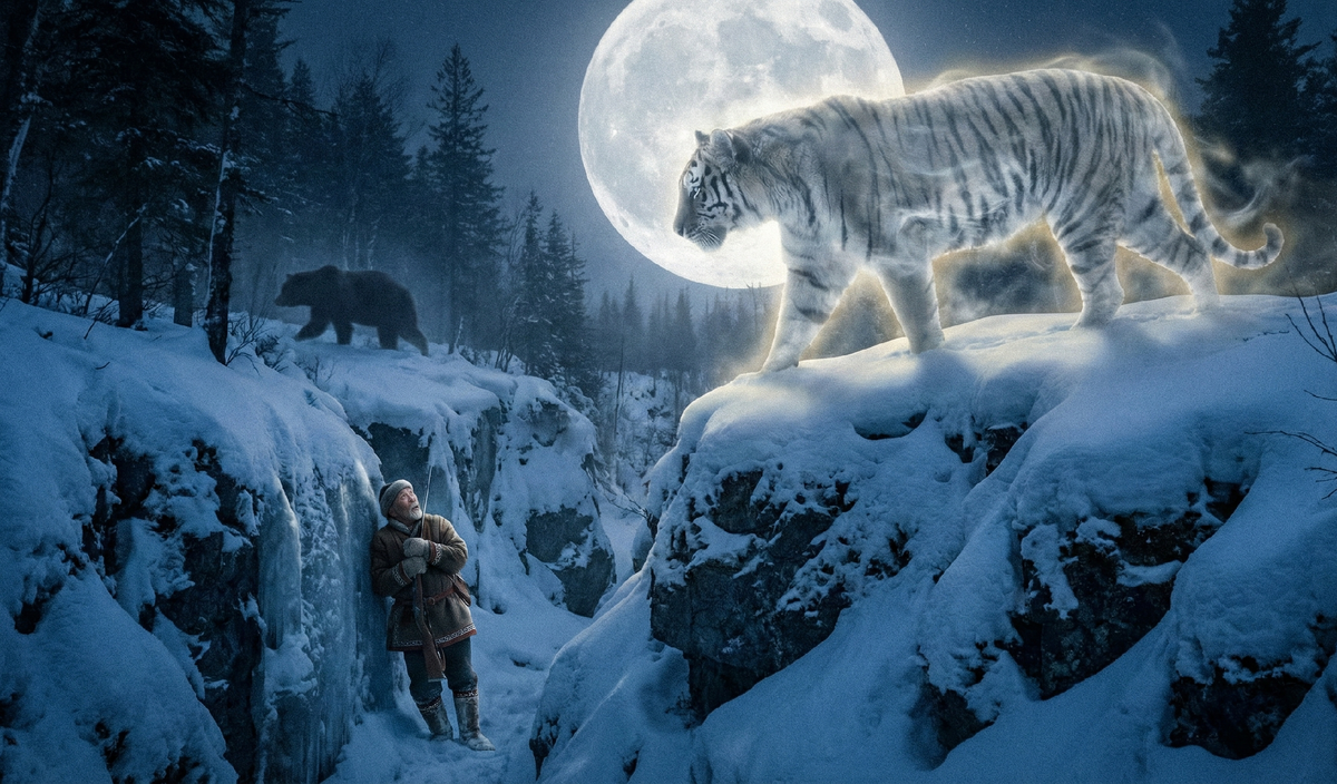 Это был тигр. Но такой, каких не бывает на земле. Он был огромен, гораздо больше того Императора, которого Павел провожал в последний путь. Его тело было соткано из серебристого лунного света и клубящегося морозного пара. Сквозь его полупрозрачный силуэт просвечивали звезды. Он стоял на снегу, но его лапы не оставляли следов, не приминали ни единой снежинки.