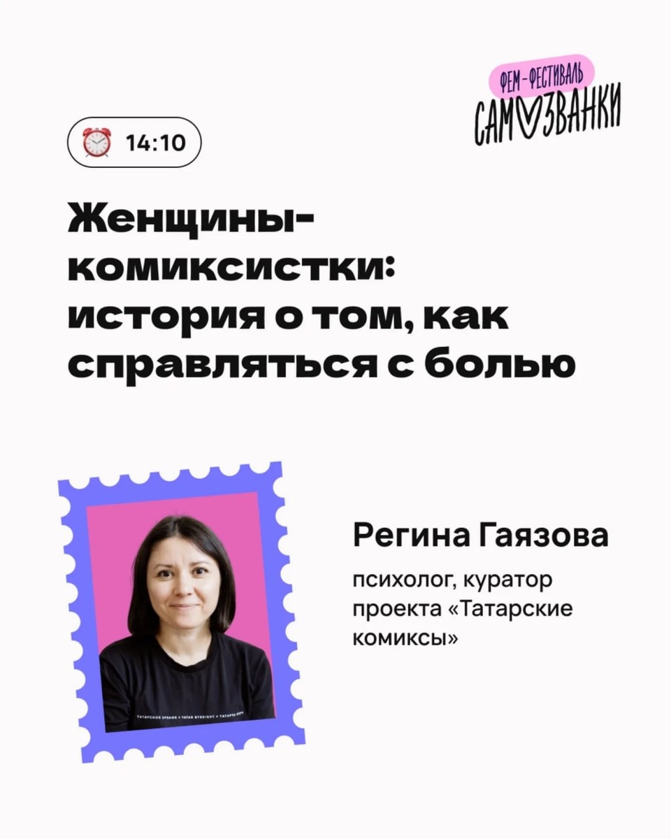 Регина будет рассказывать об опыте женщин-комиксисток, все подробности о проведении можно будет узнать, зарегистрировавшись.