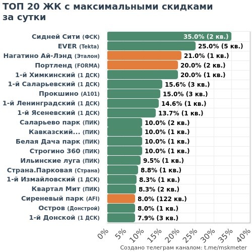 🟩 Честные скидки: 31 ЖК (59 кв.) 🟧 Маркетинг скидки: 12 ЖК (136 кв.) 💎 МАКСИМАЛЬНАЯ ЭКОНОМИЯ 🏆 ФСК • Сидней Сити ├🔻16.0M → 45.7M • 3-к 83м² └🔻14.1M → 73.0M • 4-к 139м² 🥈 Tekta • EVER ├🔻11.3M → 45.5M • 4-к 102м² ├🔻8.4M → 46.7M • 4-к 85м² └🔻5.5M → 49.9M • 4-к 100м² 🥉 Донстрой • Остров └🔻4.6M → 57.0M • 3-к 90м² 4️⃣ A101 • Прокшино ├🔻3.0M → 20.3M • 2-к 51м² ├🔻2.9M → 20.6M • 2-к 62м² └🔻2.8M → 20.3M • 2-к 49м² 🔑 САМЫЕ ДОСТУПНЫЕ 🏆 ПИК • Восточное Бутово └🔻379к → 5.4M • Студия 20м²❗️ 🥈 ПИК • Середневский лес └🔻252к → 9.0M • Студия 30м² 🥉 ПИК • Зелёный парк └🔻408к → 9.0M • Студия 29м² 4️⃣ ПИК • Белая Дача парк └🔻903к → 9.0M • 1-к 38м² 5️⃣ 1 ДСК • 1-й Химкинский └🔻2.2M → 10.9M • 2-к 59м² 6️⃣ 1 ДСК • 1-й Ясеневский └🔻1.6M → 11.4M • Студия 28м²❗️ 7️⃣ 1 ДСК • 1-й Донской ├🔻690к → 11.8M • 2-к 43м² └🔻968к → 12.3M • 2-к 57м² 8️⃣ ПИК • Ярославский квартал └🔻452к → 12.3M • 2-к 50м² ❗️— лоту меньше месяца 👇 Полная статистика: 📲 В Telegram | 🌐 На MskMeter.ru