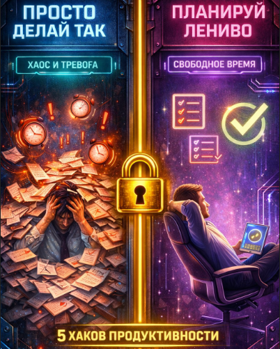 У вас в списке дел 50 пунктов, из которых вы делаете 3, а потом вините себя весь вечер? Поздравляю, вы в ловушке «продуктивной тревожности». В 2026 году модно не «пахать», а «синхронизироваться». Я нашел 5 техник, которые позволяют выкинуть 80% мусора из ежедневника и сфокусироваться на том, что реально приносит результат. Просто делай так!