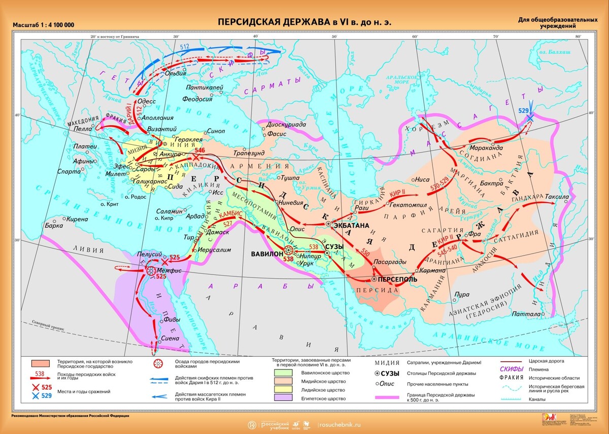 Образована данная могущественная по меркам прошлого империя была в результате завоеваний царя Кира II Великого из персидской династии Ахеменидов. Ниже показана карта того государства с информацией о походах и сражениях персидских войск, которые и привели к сборке этого государства.