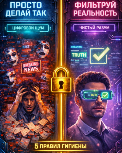 Вы уверены, что видео с вашим любимым блогером — настоящее? А новость, от которой у вас подскочило давление — не галлюцинация нейросети? В 2026 году информация стала оружием массового поражения. Мошенники и алгоритмы охотятся не за вашими паролями, а за вашими эмоциями. Я собрал 5 базовых фильтров, которые помогут вам сохранить трезвую голову в океане цифрового шума. Просто делай так!