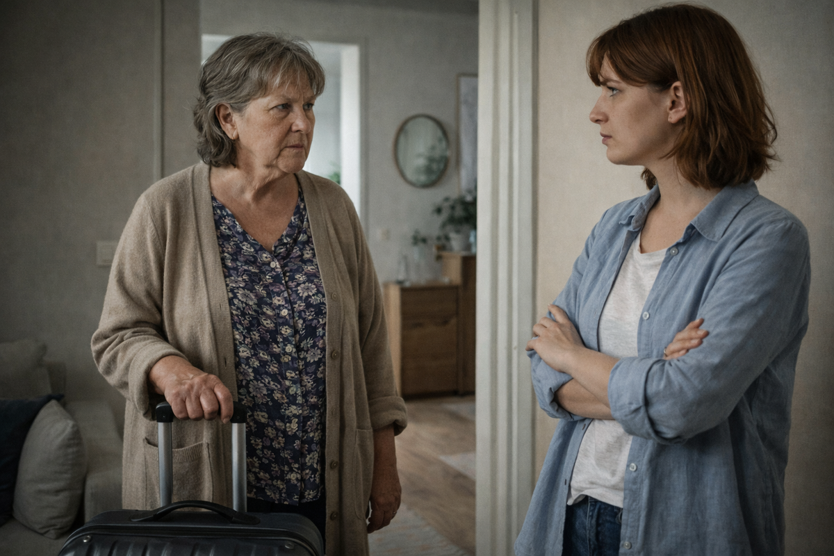 Когда муж уехал в командировку, Алина впервые за долгое время почувствовала тишину. Не ту тревожную, когда в доме накапливаются недосказанности. А нормальную. Рабочую. Она строила планы: разобрать шкаф, заказать новую посуду, по вечерам смотреть сериалы без комментариев «это глупо» или «зачем ты тратишь время». Командировка должна была длиться три недели. На третий день в дверь позвонили. На пороге стояла свекровь — Лидия Петровна. С чемоданом. — Ну здравствуй, — сухо сказала она. — Раз Саши нет, поживу у вас немного. Мне в поликлинику нужно, да и вообще… соскучилась. Алина замерла. Предупреждения не было. Ни звонка, ни сообщения. — Вы могли бы сказать заранее, — осторожно заметила она. — Я к сыну приезжаю, а не в гостиницу, — отрезала свекровь и вошла в квартиру. С этого момента тишина закончилась. Лидия Петровна сразу обозначила территорию. Переставила посуду на кухне — «так удобнее». Переложила полотенца — «по цветам должно быть». Заглянула в холодильник. — Вы что, полуфабрикаты еди