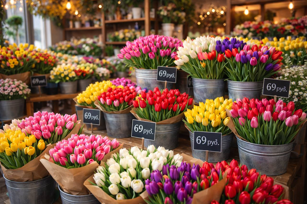 В этой статье расскажу, где выгоднее покупать цветы на 8 Марта, рассмотрим, сколько стоят тюльпаны в преддверии праздника. 8 Марта — женский день. В этот праздник, как правило, мужчины поздравляют женщин, оказывая знаки внимания. Так прижилось, что главным подарком в этот день стал тюльпан. Проанализировав за несколько лет места, где продают тюльпаны в преддверии праздника, с радостью расскажу, как я покупаю тюльпаны выгодно, и поделюсь с вами этими местами. Для начала рассмотрим, сколько стоят тюльпаны в преддверии 8 Марта, на примере нескольких специализированных цветочных магазинов: В них цены в преддверии праздников очень высокие! Цветочный 1. Рига маркет. Цветы с Рижского рынка