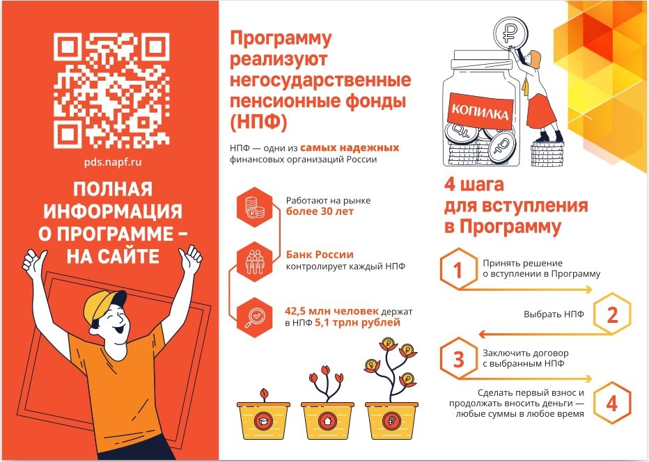 ! ☝️Вот как это работает: ✔️заключаете договор с негосударственным пенсионным фондом и делаете взносы по удобному графику ✔️получаете господдержку: дополнительные взносы, налоговые преимущества и надёжную защиту ваших денег ✔️по истечении установленного срока получаете накопления с процентами. Подумайте о своём благополучии заранее!🤝 ➡️ Подробнее о ПДС можно узнать здесь (clck.ru/3PmFQi) #долгосрочныесбережения