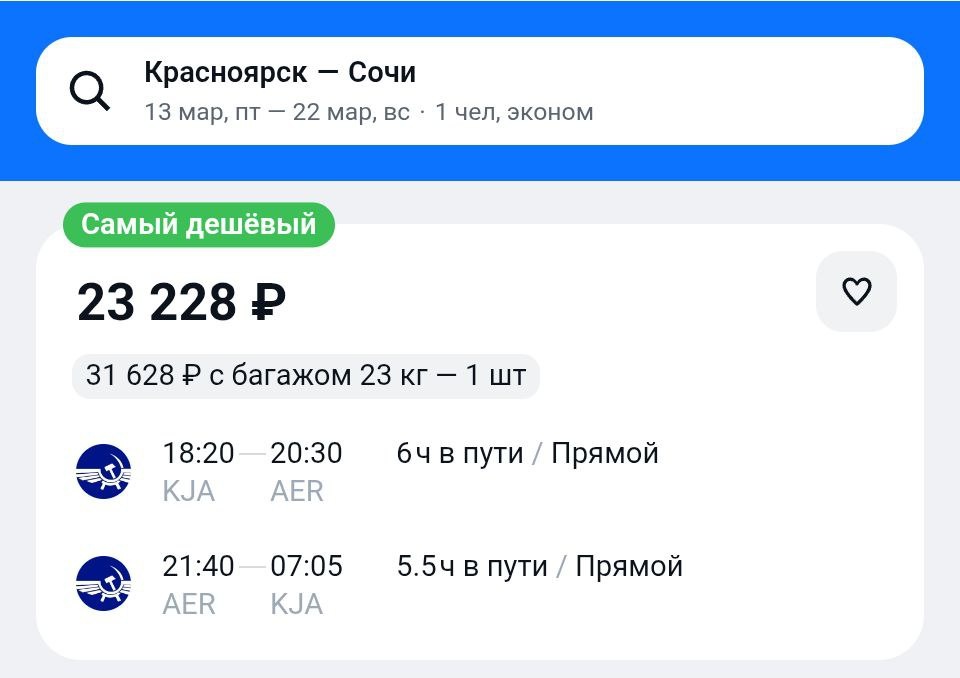 Цены на март. Даты выборочные https://aviasales.tpm.lv/L6Q6GasR #AER @KJA
