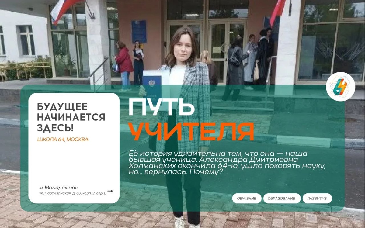 Ребятам из 64-й я хочу пожелать... не бояться быть любопытными. Задавайте вопросы, спорьте с учителями (уважительно, конечно), ищите то, что зажигает вас по-настоящему. Школа — это не просто подготовка к ЕГЭ, это время проб и ошибок. Не бойтесь ошибаться, пробуйте новое, выходите из зоны комфорта. И помните: за этими окнами — огромный и интересный мир, который только и ждет, когда вы начнете его исследовать. Удачи вам!