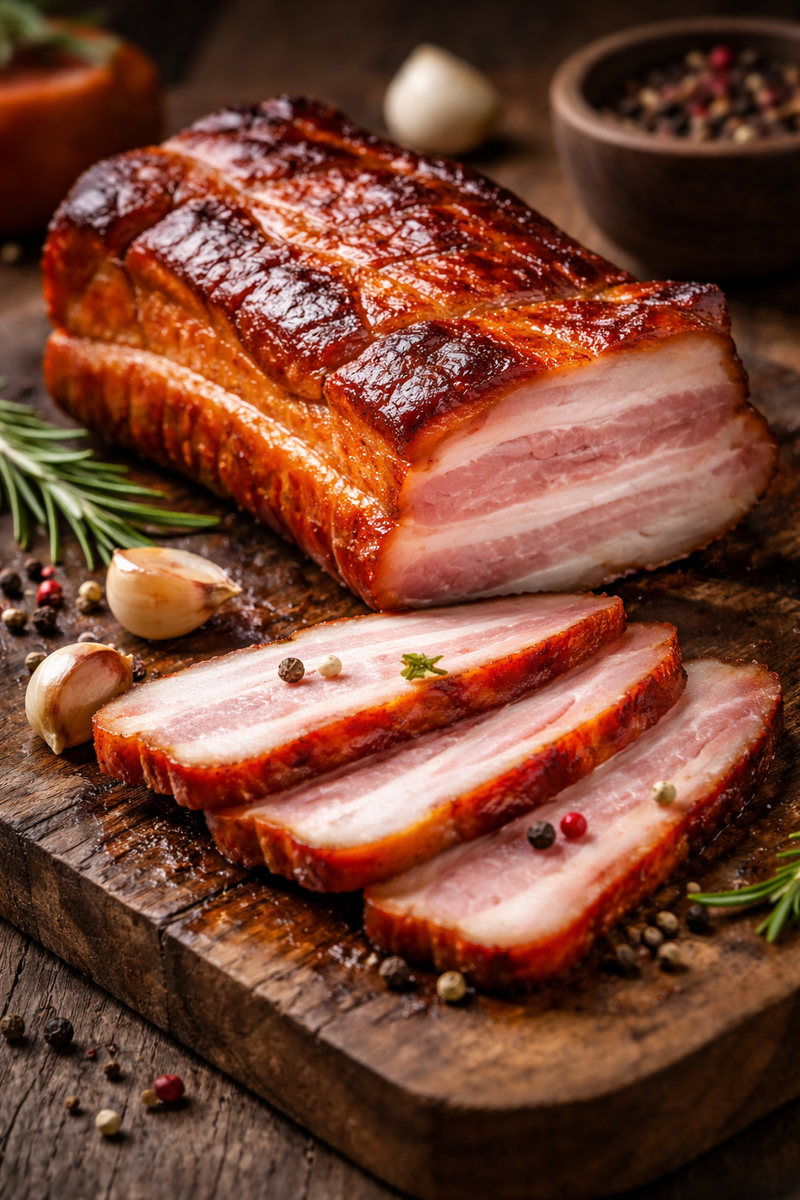 - Π ΠΡΠ°Π»ΠΈΠΈ β Pancetta (ΠΏΠ°Π½ΡΠ΅ΡΡΠ°), ΠΊΠΎΡΠΎΡΡΡ Π²ΡΠ»ΡΡ ΡΠΎ ΡΠΏΠ΅ΡΠΈΡΠΌΠΈ.