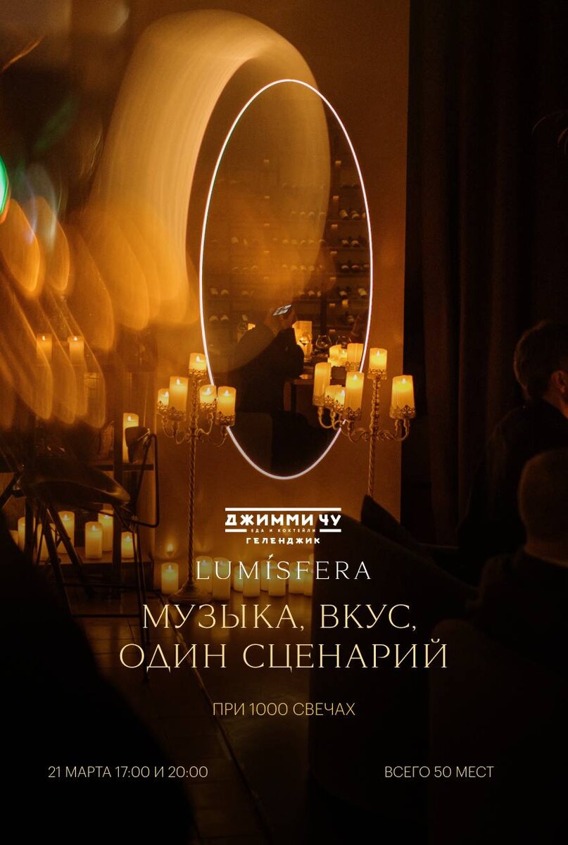 Новый формат события ЛюмиРест = концерт Lumisfera + ресторан «Джимми Чу» Это коллаборация в формате особенного культурного вечера, где вы не просто наблюдатель, а являетесь частью единого сценария. Исключительно в ЛюмиРест: - камерный формат, гостей меньше, чем на концерте, и это выборка единомышленников - меню ужина, как часть сценария, обостряет вкусовые рецепторы - магия светского вечера - фотозона – все пространство ресторана - дресс-код Lumisfera Прочувствовать атмосферу эстетики и статуса при свете тысяч свечей можно только на 2 эксклюзивных ужинах в ресторане «Джимми Чу» 🗓️21 марта, 17:00 и 20:00 📍Геленджик, ул. Крымская 3, корп 2 🎫Билеты 🛜Геленджик на связи