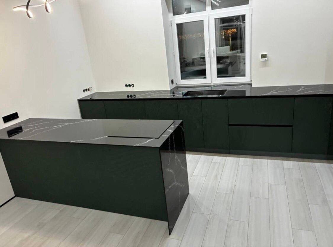 ! ✨ Спешим поделиться кадрами нового проекта. Перед вами кухня со столешницей и островом из искусственного камня Torranz Premium в благородном оттенке TMC-401 Santa-Barbara. На что стоит обратить внимание в этом проекте: ✅ Единая композиция: Реализован бесшовный переход столешницы в подоконник. Такое решение не только смотрится круто, но и визуально расширяет пространство. ✅ Дизайнерский остров: Ножка острова также выполнена из камня. Это придает конструкции монументальность и законченный вид. ✅ Мастерство стыковки: Посмотрите, как изящно переходит мраморный рисунок с одной поверхности на другую. Это добавляет особого шарма и премиальности всему интерьеру. Как вам такое исполнение? #stonestore #TorranzPremium #TMC401SantaBarbara #дизайнинтерьера #кухниназаказ #искусственныйкамень #столешницаизкамня
