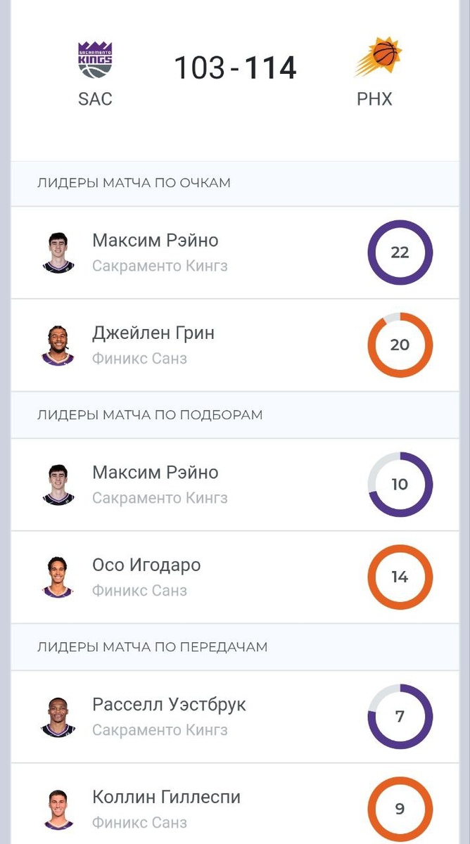 Результаты игрового дня