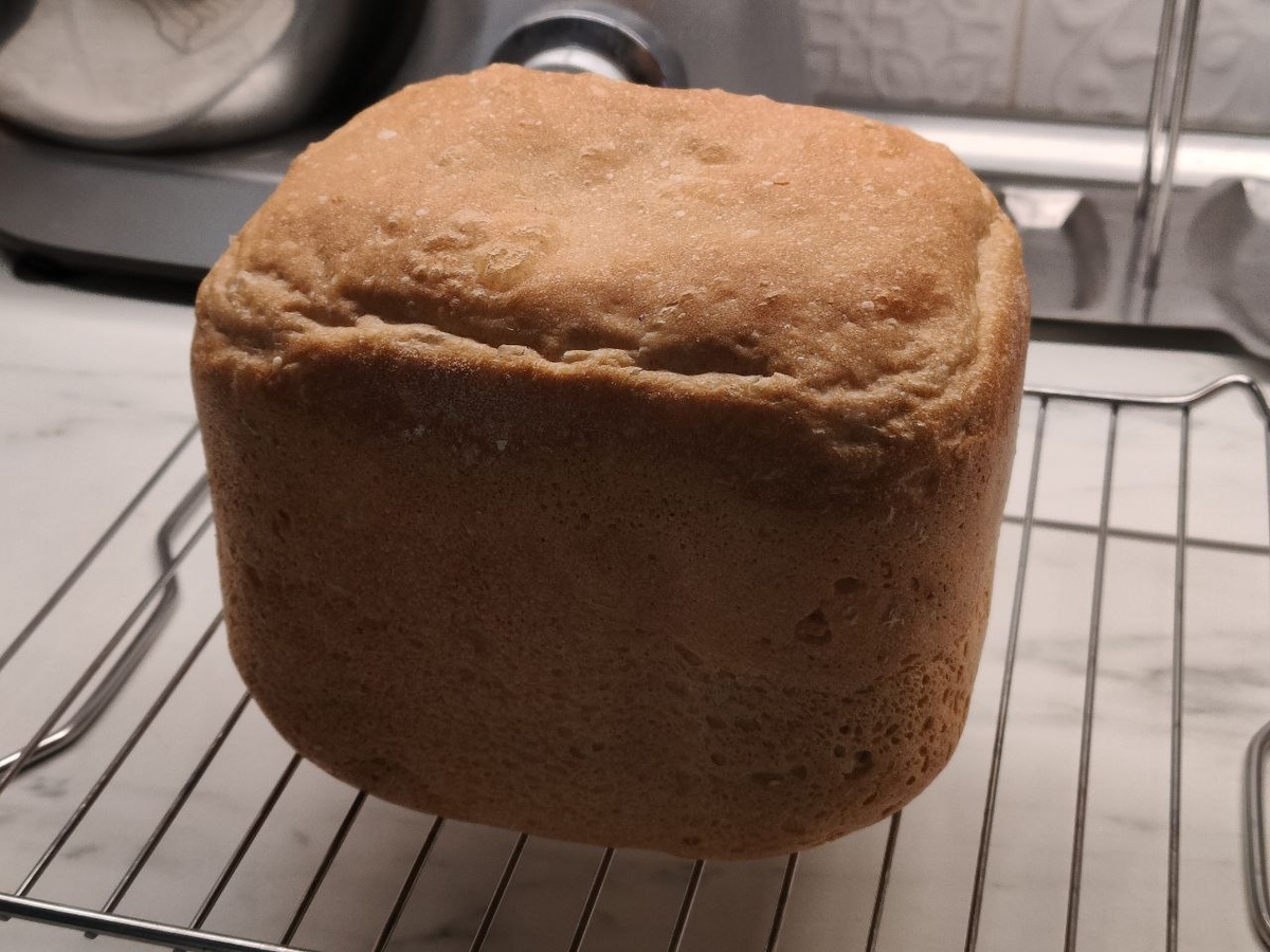 🌾 Пекла по этому рецепту уже несколько раз, результат стабильный: хлеб мягкий, держит форму, не крошится. Подходит для ежедневных бутербродов или просто к супу. Почему он удался, на мой взгляд: — пшеничной муки чуть больше, чем цельнозерновой (300 на 255 г) — это даёт структуру; — масло в составе делает мякиш мягче; — семечки добавляю по желанию, но с ними интереснее по текстуре. Рецепт на буханку 1 кг для хлебопечки : 📝 Ингредиенты: Вода — 380 мл; Масло растительное — 30 г; Мука пшеничная — 300 г; Мука цельнозерновая — 255 г; Сахар — 1,5 ч. ложки; Соль — 1,5 ч. ложки; Дрожжи сухие активные — 1 ч. ложка; Семечки , я добавляю смесь семечек для хлеба и салата — 50 г (по желанию) В этот раз получилось без семечек. Почему-то не сработал диспенсер, и они не высыпались. Как пеку: Закладываю всё в хлебопечку в порядке по инструкции. Режим — основной, вес — 1000 г, корочка — тёмная. Кто тоже печёт с цельнозерновой мукой — какие пропорции нравятся вам? Делитесь опытом 👇 #ре