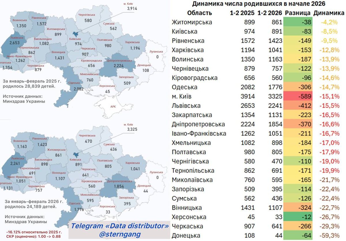 , то семья будет всё продавать (квартиру, дачу, гараж) и переезжать в Польшу, так как вторую зиму без электричества переживать они не собираются. Могу сказать, что схожие мысли высказывал укрожурналист Романенко. Не прямо, конечно, но в том духе, что если в этом году украинская власть траекторию развития конфликта не поменяет, то он будет уходить на «запасные аэродромы». По картинке с динамикой числа родившихся на Украине можно примерно оценить, с каких регионов идёт наибольший отток населения. С некоторых регионов Западной Украины «сваливают за бугор» больше, чем с Днепропетровской области.