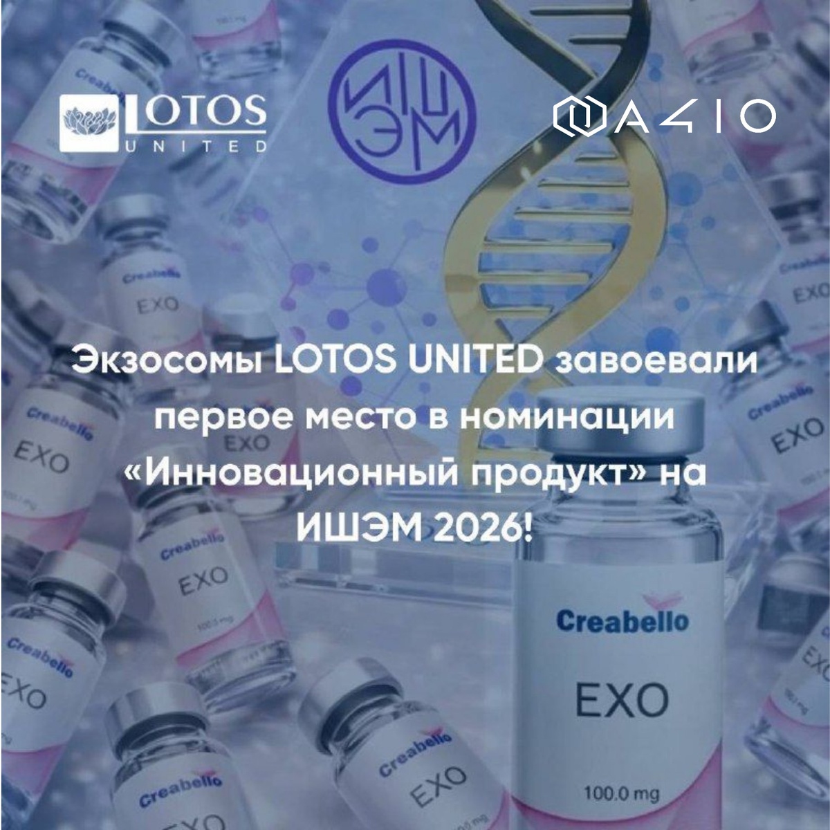 НОВОСТИ LOTOS UNITED 📢 Совсем недавно компания LOTOS провела пресс-конференцию, посвящённую победе на престижной международной премии IMCAS Industry Innovation Award 🥇, а теперь наши партнеры стали обладателями новой награды на ИШЭМ 2026! 🎉 🏆Экзосомы компании - Creabello EXO завоевали первое место в номинации «Инновационный продукт» на ИШЭМ 2026. LOTOS UNITED всегда подходит к выводу продукта на рынок с максимальной ответственностью: перед запуском экзосом компания провела обширные исследования 🔬 и опубликовала 7 научных статей 📚, подтверждающих эффективность и безопасность продукта. ✅ Будьте в курсе самых свежих новостей в эстетической медицине вместе с А410! 💡