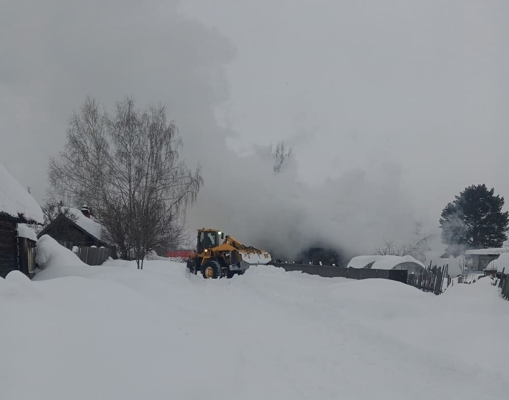 Пожарные машины не смогли проехать по сугробам к горящему дому в Прикамье
