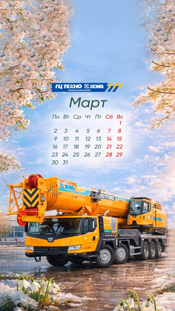 Подготовили фирменные заставки для телефона с календарём на месяц. На обоях — техника и удобная сетка дат, чтобы всё важное было перед глазами. Скачивайте, устанавливайте и встречайте весну вместе с ГЦ Техно. Ставьте на экран — делитесь в комментариях, интересно посмотреть, какой вариант выберете.