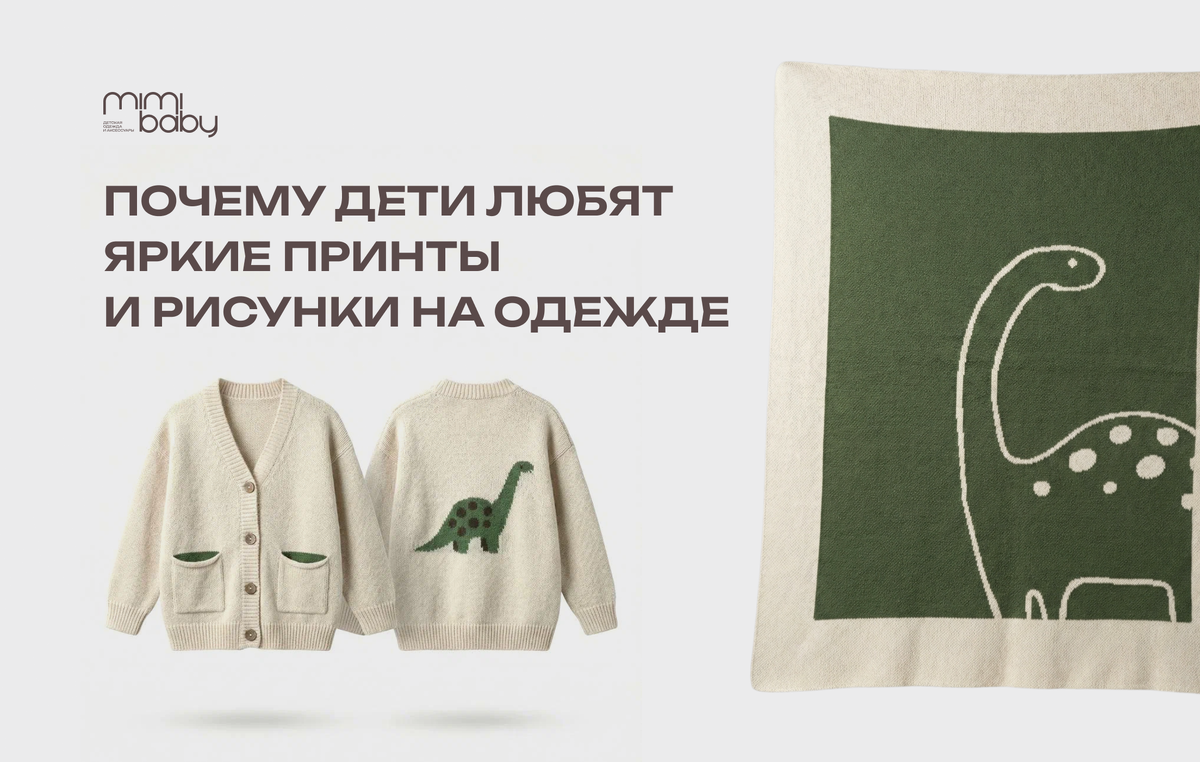 Иногда ребёнок выбирает вещь не потому, что она теплее или удобнее. А потому что на ней — динозавр. Или мишка. Или маленький рисунок, который хочется носить всегда и везде, показывая его всем остальным. Он тянется именно к этой вещи. Узнаёт её. Радуется. Для взрослого это может быть просто принт. Для ребёнка — часть его внутреннего мира. Рисунок помогает ребёнку узнавать себя В раннем возрасте дети познают мир через образы. Им важно видеть знакомые формы, силуэты, персонажей. Рисунок на одежде становится чем-то личным: — «это мой динозавр» — «это моя кофта» Так формируется первое чувство выбора и самостоятельности. Даже маленький элемент помогает ребёнку почувствовать: это принадлежит мне. Принты поддерживают воображение Дети легко оживляют предметы. Динозавр на кардигане может стать спутником прогулки. Медвежонок — участником игры. Одежда перестаёт быть просто одеждой. Она становится частью игры и фантазии. Это поддерживает естественное развитие воображения — важного навыка детства. Ч