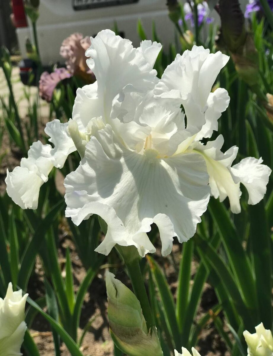 🤍 Шедевр австралийской селекции, удостоенный высшей награды континента — Медали Дайкса (2004). Этот высокорослый ирис (94 см) распускается одним из первых. Его крупные цветы сияют безупречной белизной, которую подчеркивает пушистая белая бородка. Сорт отличается чистотой окраски и изяществом формы. Лёгкий ненавязчивый аромат. Результат скрещивания сортов 'Skating Party' и 'Scandia Delight'. ✅ В наличии, 500 руб.