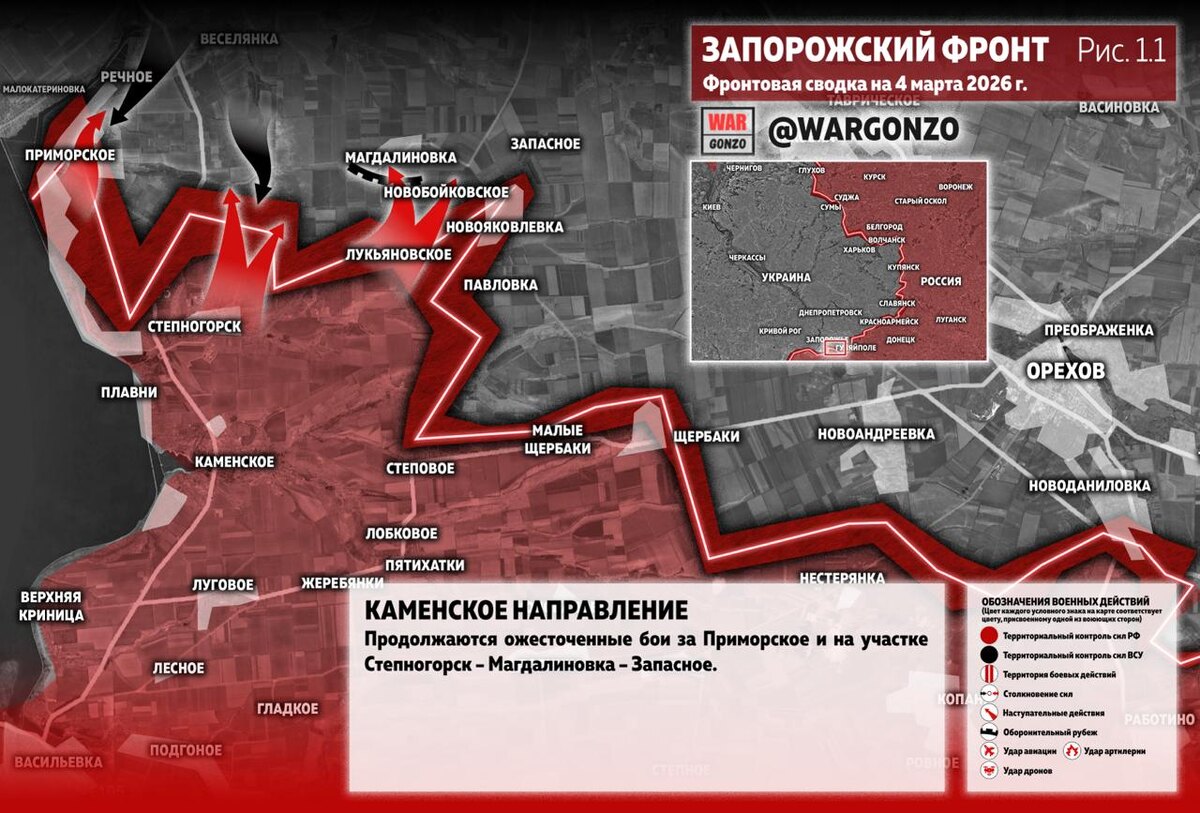 Продолжаются ожесточенные бои за Приморское и на участке Степногорск – Магдалиновка – Запасное. (Рис. 1.1)