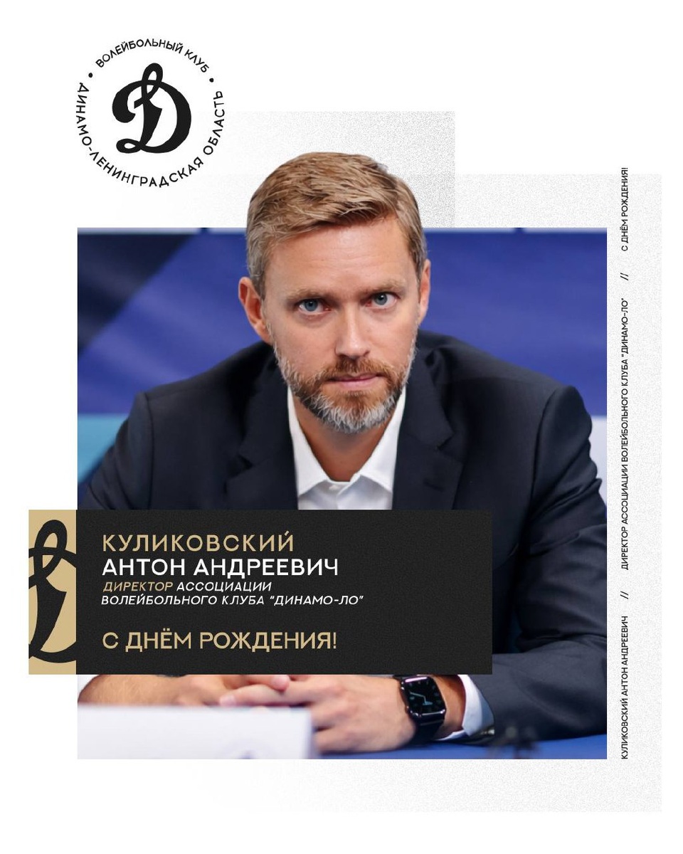 Сегодня день рождения отмечает директор волейбольного клуба «Динамо-ЛО» Антон Андреевич Куликовский