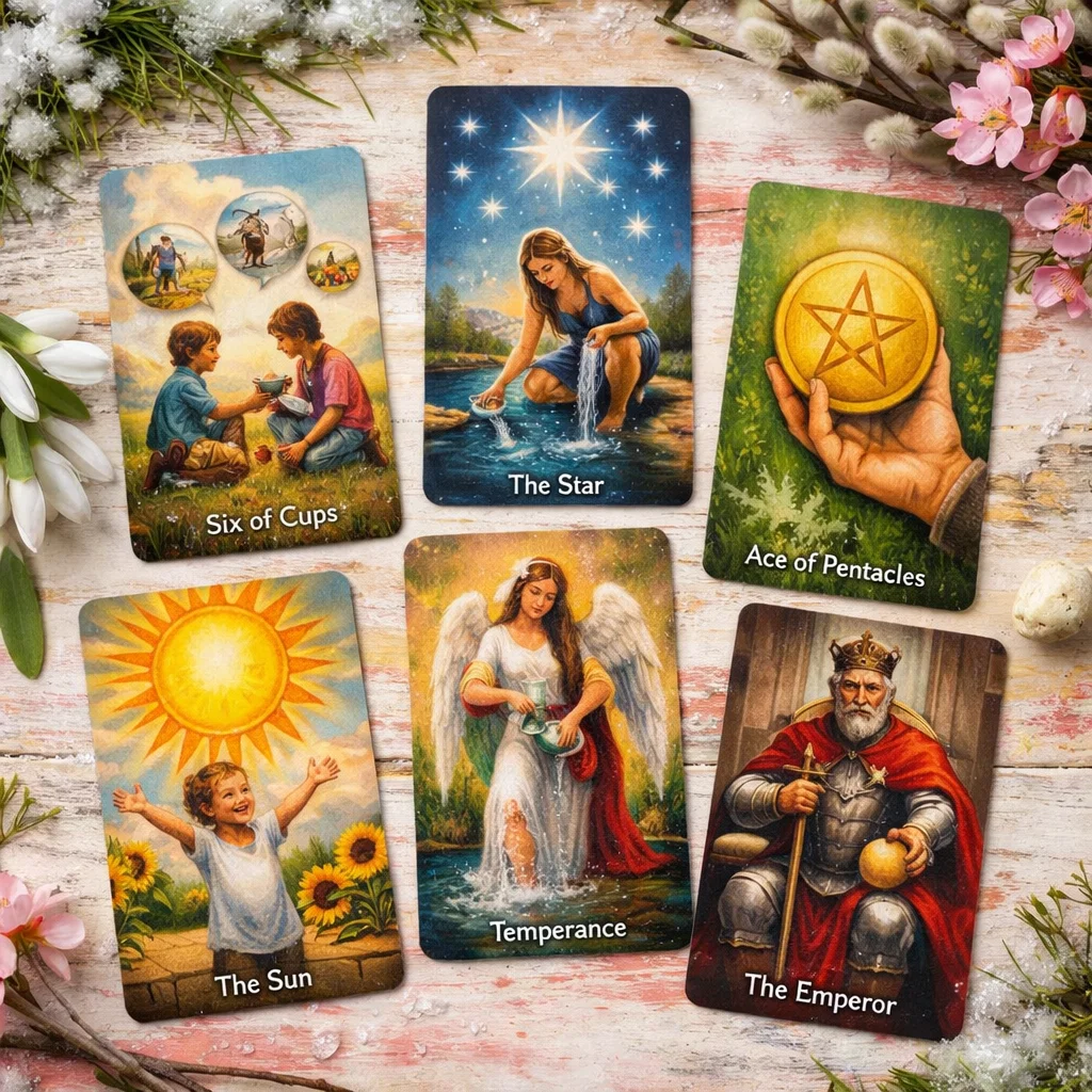 Спасибо каждому за лайки, подписки, комментарии, донаты! 🙏❤️ Вы вдохновляете меня создавать новые расклады и делиться важными посланиями. Пусть всё добро возвращается к вам сторицей! 💖 Девочки, сегодня будет один из тех раскладов, где карты не предупреждают и не учат — они показывают дары. Потому что у судьбы есть особенность: после периода напряжения она всегда возвращает баланс. Иногда это происходит тихо, почти незаметно. А иногда жизнь делает красивый жест — словно говорит: «ты выдержала, значит теперь смотри, что я приготовила». Тема сегодняшнего расклада простая, но очень глубокая: какой подарок принесёт вам весна. Не случайное событие, не мимолётная удача, а именно тот знак судьбы, который ощущается как облегчение и одновременно как новый вдох. Начинается всё с Шестёрки Кубков. Это энергия возвращения того, что когда-то было для вас тёплым и важным. Весна может неожиданно вернуть в вашу жизнь человека, с которым у вас уже была связь — эмоциональная, романтическая или даже дело