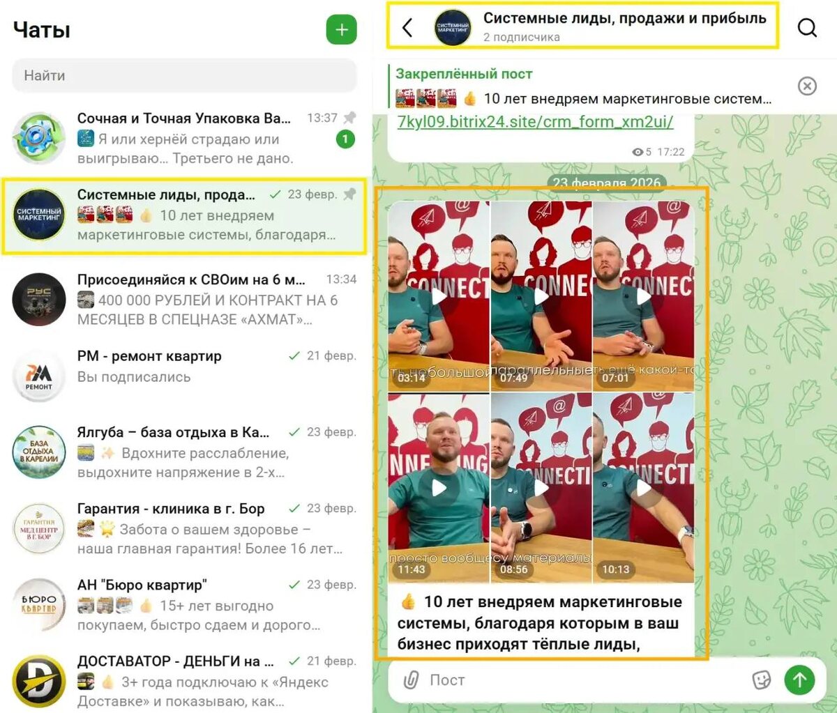 Π§ΡΠΎ ΠΌΡ ΡΠ΄Π΅Π»Π°Π»ΠΈ? 1. Π‘ΠΎΠ·Π΄Π°Π»ΠΈ ΠΊΠ°Π½Π°Π» 2. Π£ΠΏΠ°ΠΊΠΎΠ²Π°Π»ΠΈ Π·Π° 1 Π΄Π΅Π½Ρ 3. ΠΠ°ΠΏΠΈΡΠ°Π»ΠΈ Π²ΠΈΠ΄Π΅ΠΎ-ΠΏΡΠ΅Π·Π΅Π½ΡΠ°ΡΠΈΡ 4. ΠΠ»ΠΈΠ΅Π½Ρ Π΄ΠΎΠ²ΠΎΠ»Π΅Π½ 5. ΠΠ»ΠΈΠ΅Π½Ρ Π½Π΅ ΠΏΠ΅ΡΠ΅ΠΆΠΈΠ²Π°Π΅Ρ * ΡΡΡΠ»ΠΊΠ° Π½Π° ΠΊΠ°Π½Π°Π»Π° ΠΊΠ»ΠΈΠ΅Π½ΡΠ°, ΠΏΠΎΠ΄ΠΏΠΈΡΡΠ²Π°ΠΉΡΠ΅ΡΡ β https://max.ru/join/h5Ew2E3aBDYhsMpCPr5_nnja4ReIPMfMpeXGkI8PBzQ π€ Π ΠΌΡ ΠΏΡΠΎΠ΄ΠΎΠ»ΠΆΠ°Π΅ΠΌ Π±ΡΠ°ΡΡ Π½ΠΎΠ²ΡΠ΅ ΠΏΡΠΎΠ΅ΠΊΡΡ Π½Π° ΡΠΏΠ°ΠΊΠΎΠ²ΠΊΡ ΠΈ ΠΏΡΠΎΠ΄Π²ΠΈΠΆΠ΅Π½ΠΈΠ΅ Π² ΠΠ, Π’Π, ΠΠΠ₯, Π―.ΠΠ°ΡΡΡ ΠΈ 2ΠΠΠ‘ ΠΡΠΎΡΡΠΎ Π·Π°ΠΏΠΎΠ»Π½ΠΈΡΠ΅ ΡΠΎΡΠΌΡ ΠΈ ΠΌΡ Π²ΡΡ ΡΠ°ΡΡΠΊΠ°ΠΆΠ΅ΠΌ - https://t.me/m/Ujnu7gWWZTYy