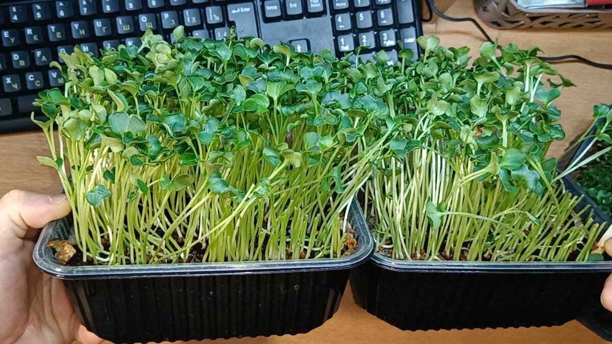 Первый контейнер с джутовым ковриком, второй с кокосовым субстратом, третий с вермигрунтом. Посадил редис в одно и тоже время в три разных контейнера. Сажать микрозелень на джутовый коврик проще чем в кокосовый субстрат. Он хорошо впитывает воду, но так сильно как Кокосовый субстрат. Вермигрунт - готовая к применению почвосмесь, содержащая большое количество биогумуса, полный набор питательных веществ. Как показывают опыты, качество микрозелени зависит от того какую культуру вы выбрали и какой субстрат для неё. Сравним результаты. Как видим микрозелень редиса посаженая в коксовом субстрате и вермигрунте выглядит лучше, чем в джутовом коврике. По вкусовым свойствам тоже отличается, более яркий вкус редиса в вермигруте. Но если сравнить по вкусу редис выращенный вермигрнте и косовом субстракте то они почти не отличаются. Можно сделать вывод что редис лучше растет и вкуснее в вермигрнте и косовом субстрате. Стоимость вермигрунта по сравнению с кокосовым субстратом выше, а разницы в качес