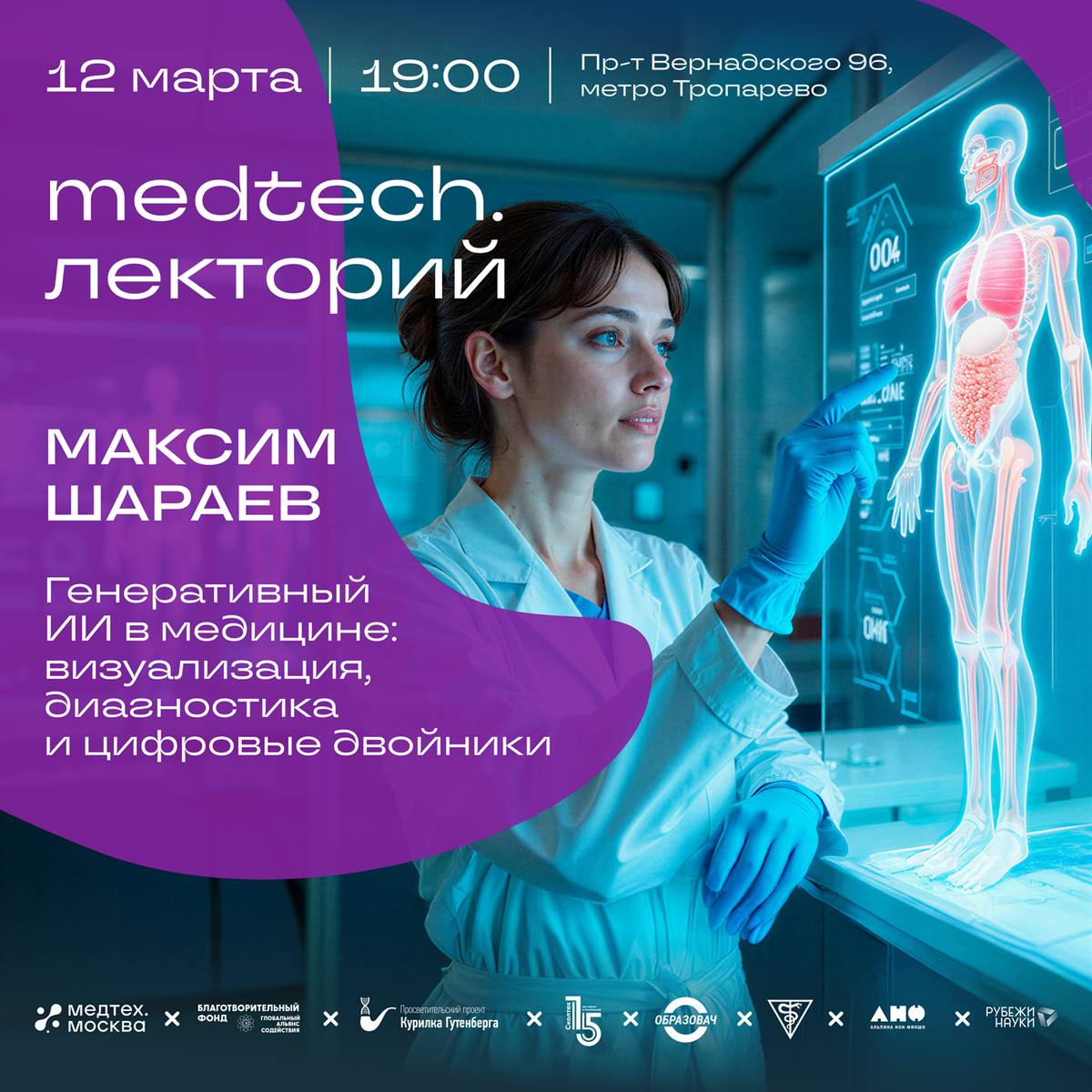 В четверг, 12 марта, состоится лекция «Генеративный ИИ в медицине: визуализация, диагностика и цифровые двойники», из которой вы узнаете, как современные вычислительные технологии позволяют моделировать исследования тканей и объединять разнородные медицинские данные, создавая виртуальные модели органов. Регистрация на мероприятие