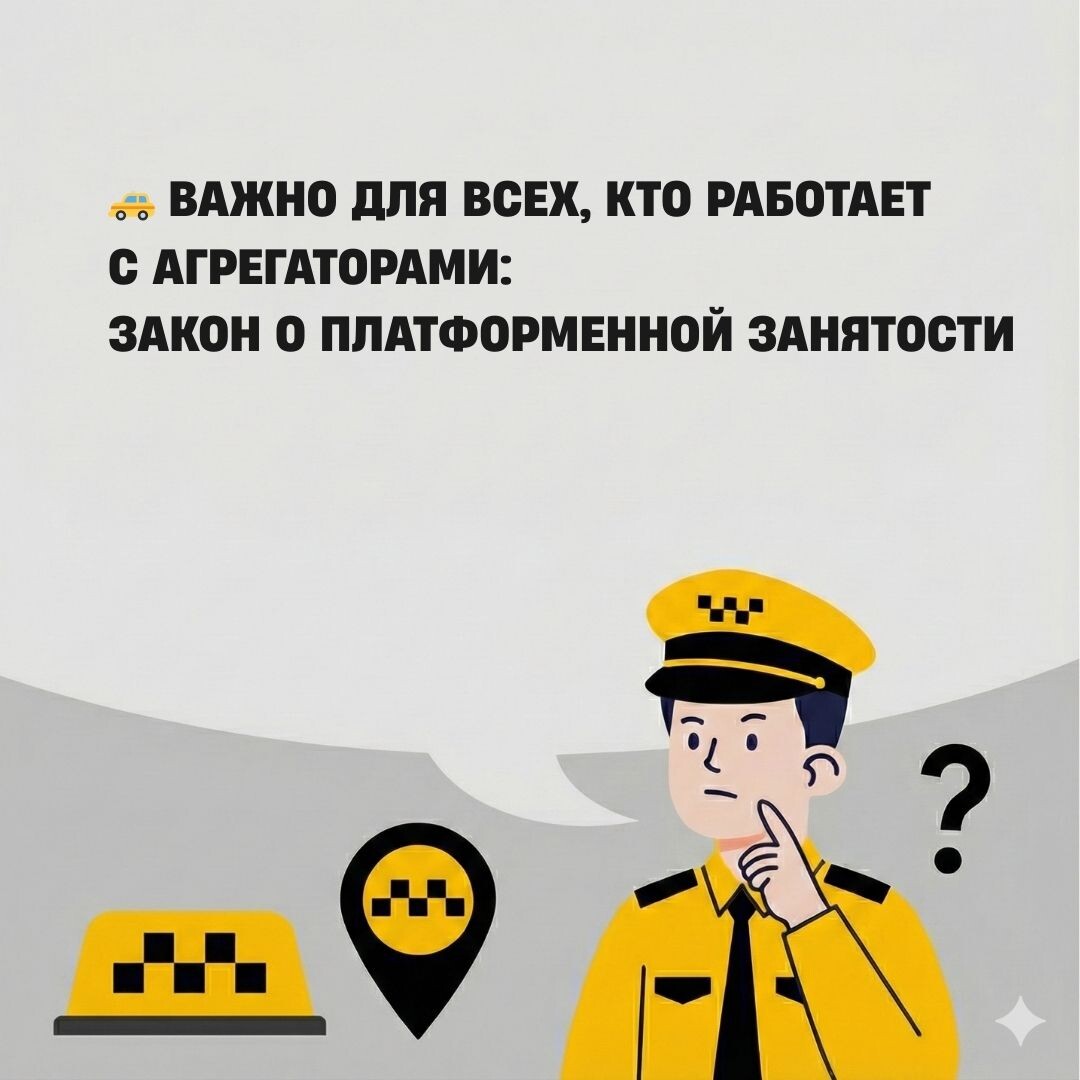 Наконец-то закон на стороне водителей? Разбираемся по порядку👇 С 1 октября вступает в силу Федеральный закон №289-ФЗ «Об отдельных вопросах регулирования платформенной экономики». Звучит сложно, но на деле это означает конкретные изменения в вашей ежедневной работе. 📌 Что вообще происходит? В России больше 15 миллионов человек работают через цифровые платформы — агрегаторы такси, курьерские сервисы, маркетплейсы. До сих пор эта сфера практически не регулировалась: каждая платформа устанавливала правила как хотела, меняла их без предупреждения, блокировала без объяснений. Теперь государство решило это исправить и ввести единые правила игры. 🚕 Что изменится для водителей такси? 🔹Всех агрегаторов внесут в госреестр. Работать смогут только те платформы, которые соответствуют требованиям закона. Серые и нелегальные схемы станет значительно сложнее использовать. 🔹Платформа обязана проверять ваши документы (разрешения, ОСАГО). Платформа теперь несет ответственность за то, чтобы на л