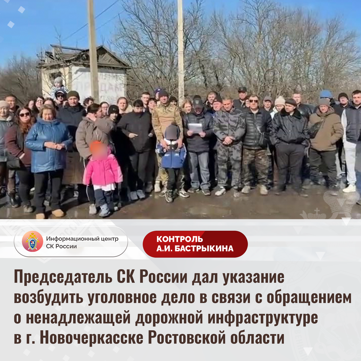 Председатель СК России дал указание возбудить уголовное дело в связи с обращением о ненадлежащей дорожной инфраструктуре в г. Новочеркасске Ростовской области