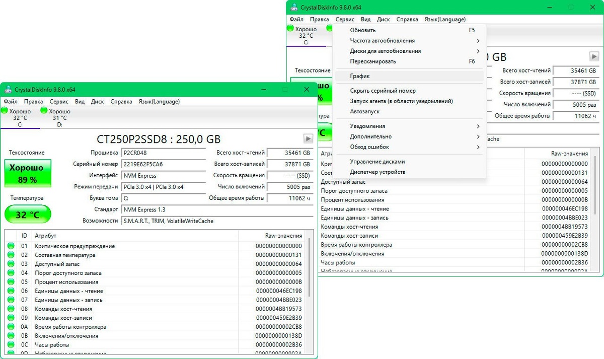 CrystalDiskInfo (9.8.0) бесплатная утилита для мониторинга состояния HDD и SSD. Отображает данные S.M.A.R.T., температуру, время наработки и предупреждает о возможных неполадках, помогая предотвратить потерю данных. ОС: Windows 11, 10, 8, 7 Язык: Многоязычный ⬇️ Проверить на вирусы ✍️ Функции и возможности 🌐 Официальный сайт Автор: @RHelpit | ⭐️ 680 #Windows #ДиагностикаW #690
