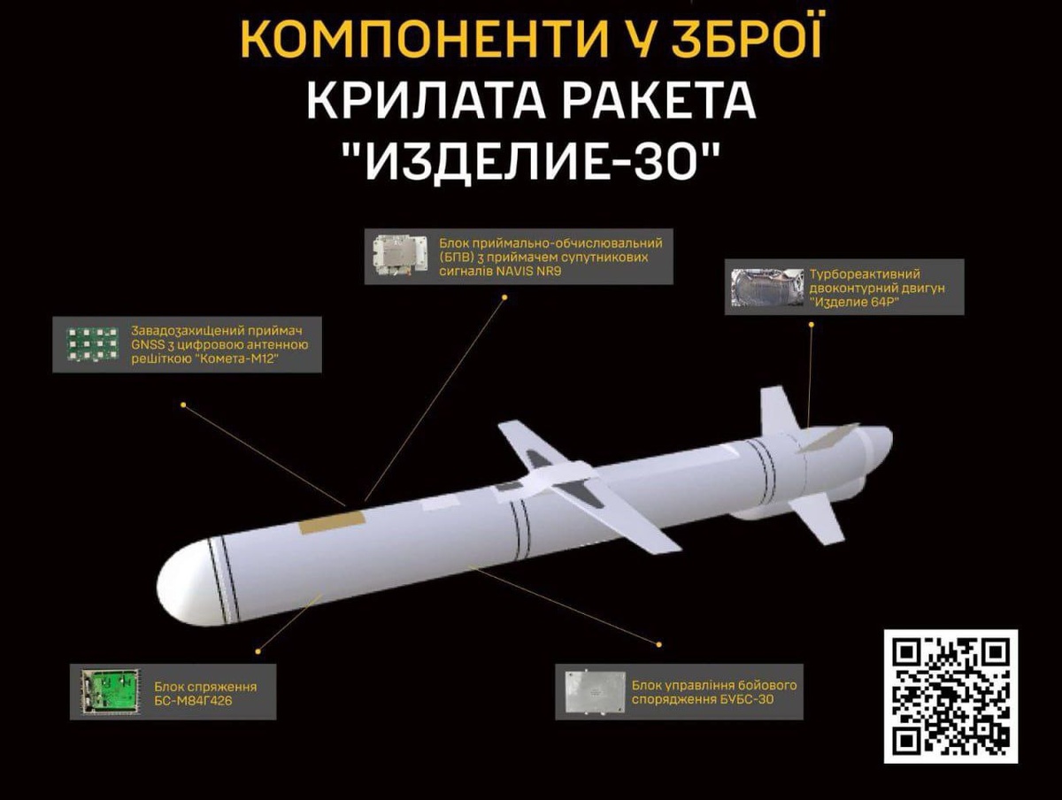 Её ограниченное использование было отмечено ещё в конце 2025 года. Характеристики ракеты позволяют ей поражать цели на дистанции не менее 1500 километров. Летя со скоростью 600-800 км/ч, она доставляет к цели боевую часть массой порядка 800 килограммов. Особенностью «Изделия-30» является повышенная устойчивость к средствам радиоэлектронной борьбы, обеспеченная установкой помехозащищённых спутниковых приёмников «Комета-12М».