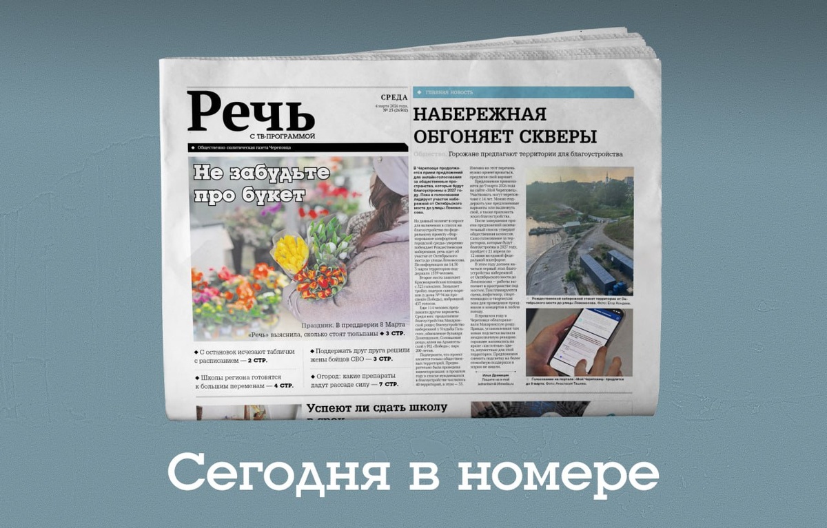 » 🔹 Тюльпановый кризис в Голландии закончился. Отразилось ли это на стоимости букетов в Череповце 🔹 По закону на остановках должно быть расписание маршрутов. В Череповце, наоборот, стали исчезать таблички с расписанием. 🔹 Среди жителей Вологодской области становится больше банкротов. 🔹 Как изменится учебная программа в школах нашего региона. А также: 🔹ТВ-программа на следующую неделю. 🔹Что нового в сдаче ЕГЭ в этом году. 🔹Какие цветы посадить на тенистых участках и многое другое. Берите газету бесплатно в местах распространения. Читайте электронные версии на сайте 35media. Речь ВКонтакте | Речь в МАКС | Речь в ОК | Речь в Дзене | 35MEDIA в МАКС