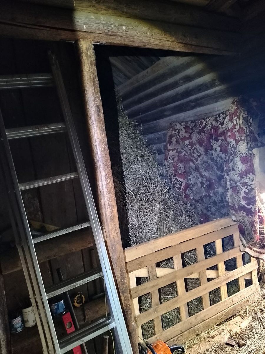 ) Реконструкция прошла успешно) Обустроен сеновал, создан отсек для окотившихся коз/овец и окота, а также общее помещение для коз и кормушка с полками для них. Остались работы по усилению обрешетки отсека с сеном после того как основную массу сена скормим живности. И пристрой. Но это уже история на осень🍂🍁🍃 Все работы производились из подручных материалов. Расходы были на несколько металлических уголков и +-полкило-килограмм разноразмерных саморезов. Сюда же пару литров бензина для бензопилы и четыре заточки цепи, т.к. качество цепи не лучшее и тупится она о старые брёвна и доски мгновенно. Ну и конечно собственные силы и время⌚. Но это я всегда приравниваю к обучению новым навыкам😉)