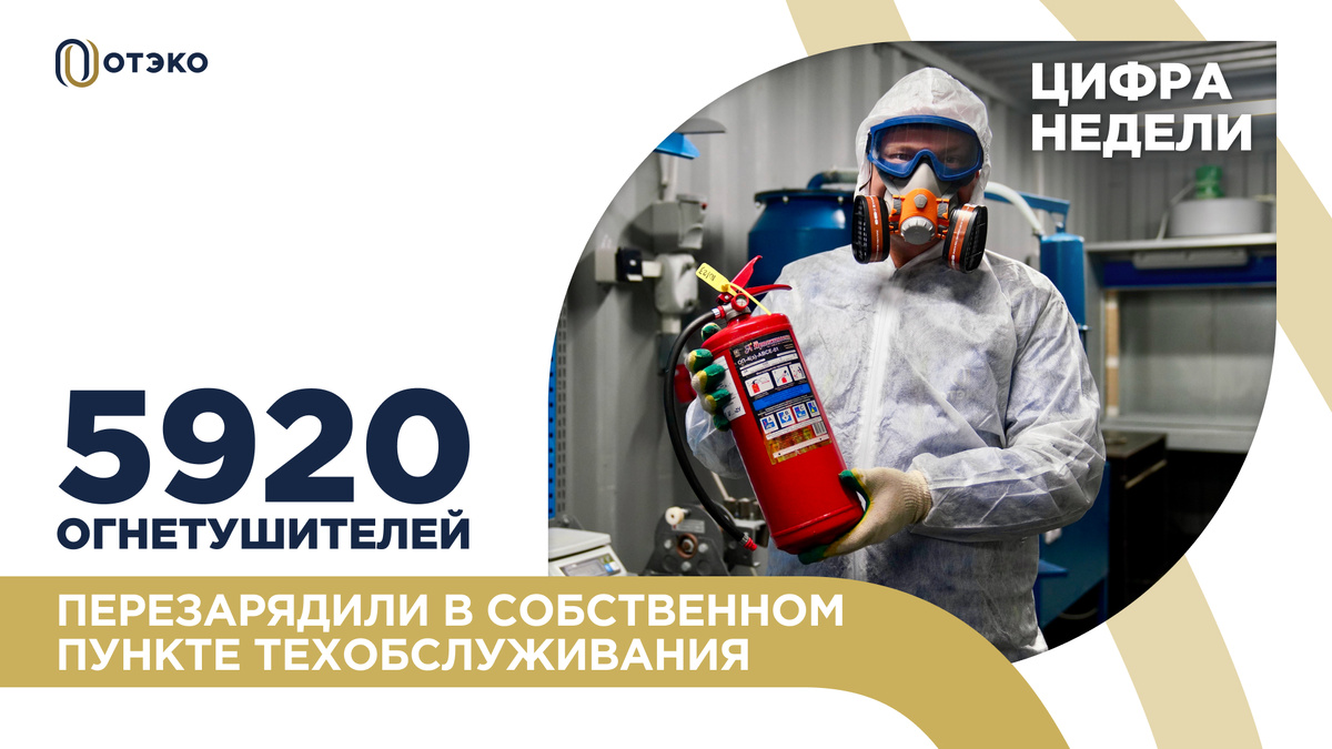 За 365 дней 2025 года специалисты ОТЭКО осмотрели, проверили давление и перезарядили огнетушащим порошком 5920 огнетушителей.
