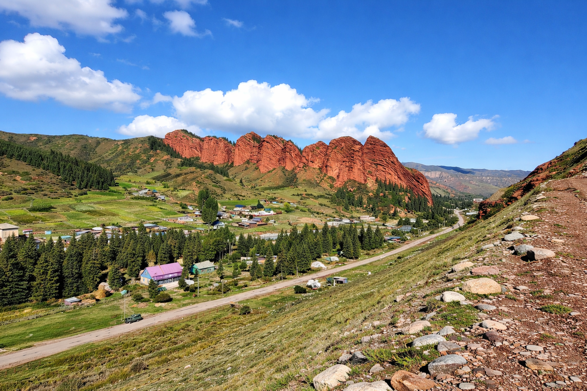 Я знаю, как вы любите легенды, сам такой же, могу слушать их часами за чаем, а у жителей Кыргызстана их столько, что хватит на целую книгу. Сегодня у меня для вас сразу три легенды, сразу скажу, что они все грустные, но красивые, и все про одно очень живописное ущелье, где скалы красные, как кровь. Мы приехали туда на рассвете. Туман ещё стоял в ущелье, и из него торчали верхушки красных скал — огромные, тёплые на вид, будто нагретые изнутри. Айнура тронула меня за плечо: «Смотри — быки просыпаются». И правда — когда солнце поднялось выше, скалы вспыхнули рыжим, и казалось, что они шевелятся. Семь каменных быков у входа в ущелье Джеты-Огуз. Им миллионы лет, а выглядят так, будто легли сюда только вчера. Про этих «быков» мне рассказывали трижды — и каждый раз историю, от которой мурашки. Первая — самая страшная. Жил хан, и у него украли жену. Он собрал войско, началась война, но украденную не вернули. Тогда мудрец шепнул похитителю: «Убей её — мёртвую никто не заберёт, война кончится».