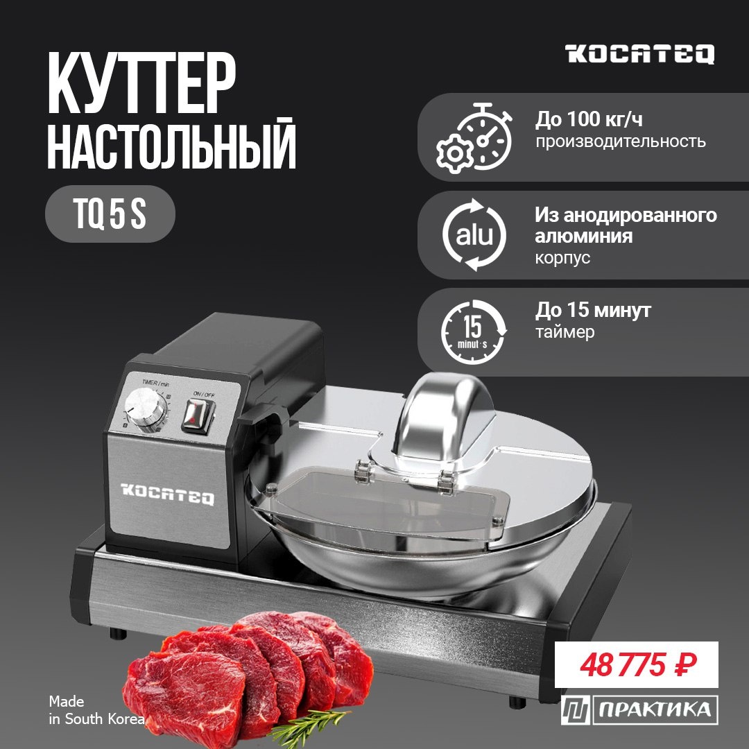 Что получится, если в одном аппарате совместить функционал мясорубки, блендера, миксера и овощерезки? Верно, куттер! Профессиональный куттер нужен для переработки различных продуктов и приготовления полуфабрикатов. Вот некоторые задачи, которые поможет вам решить куттер от KOCATEQ - TQ5S: ◽️Мясо и птица – для фарша, паштетов, колбасных масс. ◽️Рыба и морепродукты – для рыбных котлет, муссов, паст. ◽️Овощи и зелень – для пюре, супов, соусов, начинок. ◽️Орехи и семена – для паст, соусов, пралине. ◽️Фрукты и ягоды – для пюре, сорбетов, десертов. ◽️Тесто и кремы – можно замешивать жидкое тесто, взбивать муссы, кремы, майонез. ◽️Шоколад – для ганаша, соусов, начинки. ◽️Хлебные крошки, сухари – для панировок и загущения фарша. Куттеры сокращают время, необходимое для нарезки и смешивания, что позволяет ускорить обслуживание клиентов и повысить общую производительность на вашей кухне. Еще одно важное преимущество модели KOCATEQ TQ5S - полностью разборная конструкция. В новой модели снимае