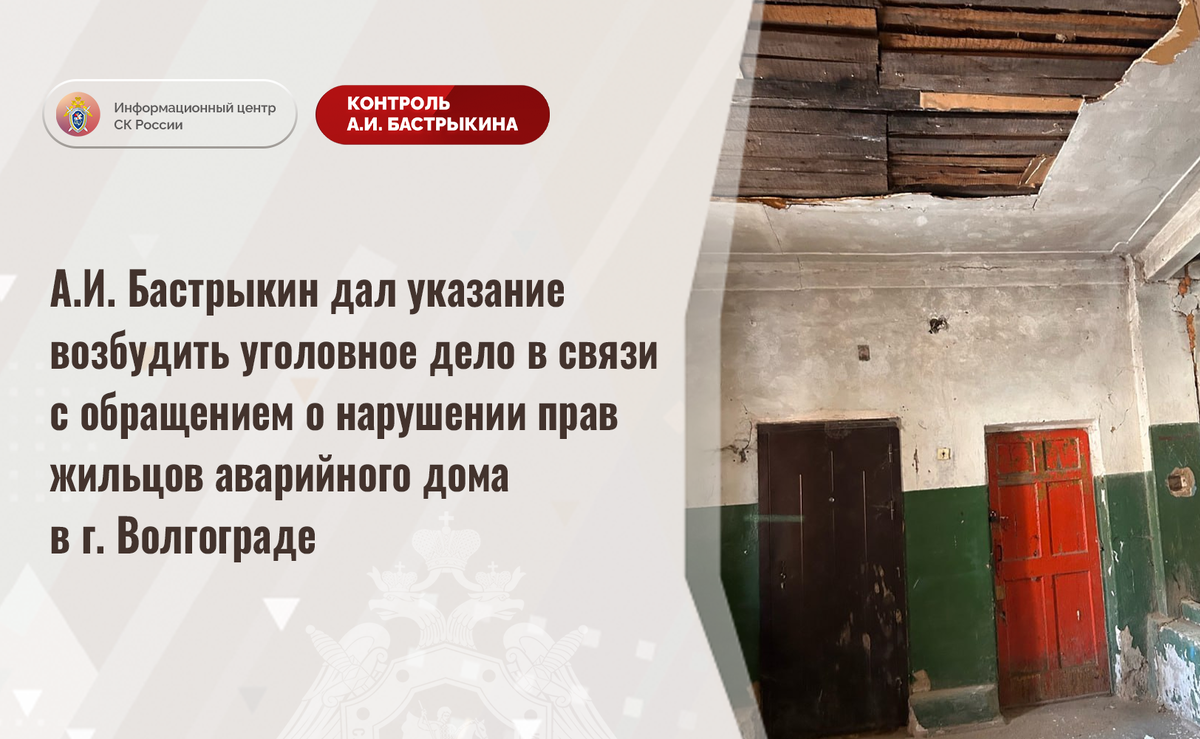 А.И. Бастрыкин дал указание возбудить уголовное дело в связи с обращением о нарушении прав жильцов аварийного дома в г. Волгограде