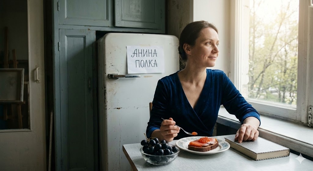 — С сегодняшнего дня в этом доме у каждого своя экономия. Твоя полка — нижняя. Там капуста и килька. Наслаждайся «фундаментом» в одиночку.