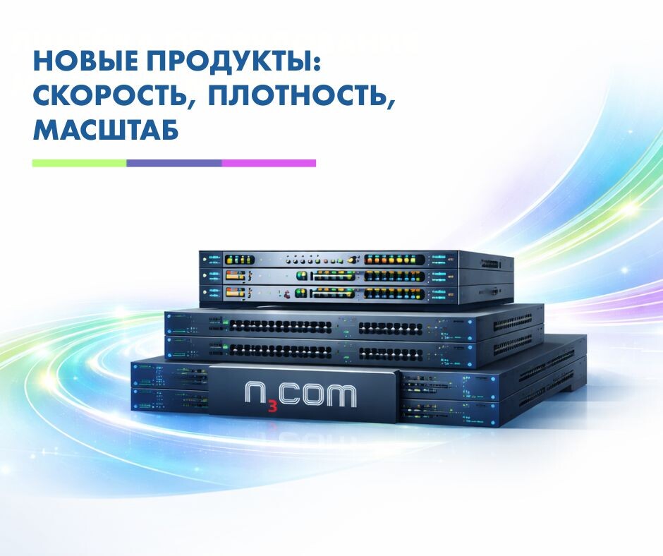 В 2025 году N3COM представила ряд технологических решений для операторских сетей и дата-центров. Обновлённое семейство L2+L3-коммутаторов ACS1700/ACS2700 предназначено для уровней доступа и агрегации. Поддержка IPv6, гибкая маршрутизация, PoE+/PoE++, SFP-порты и стекирование через линейные интерфейсы делают решения применимыми как в корпоративных LAN, так и в сетях ШПД. Ключевой новинкой стала платформа DWN7500 - DWDM-решение с поддержкой 120 каналов в расширенном диапазоне Super C. Пропускная способность увеличена на 50% по сравнению с традиционными системами. Компактное 2U-шасси, резервирование и поддержка 100/200/400G позволяют использовать платформу в магистральных сетях, DCI и крупных ЦОДах. Также представлена платформа DWN6550 NG для смешанных нагрузок IP, оптического и TDM-трафика - с поддержкой современных интерфейсов 100GE и OTU4, а также E1 и STM-n. В 2025 году успешно испытан когерентный модуль DQC100-ZR QSFP28, обеспечивающий передачу 100G на расстояния до 300 км без регене