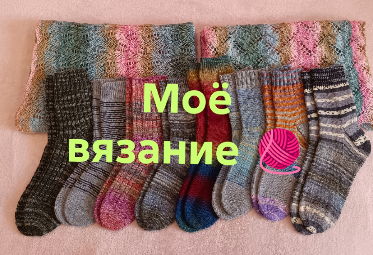 Думаю хорошо поработала за два месяца. Конечно есть мастерицы которые вяжут ещё больше и красивее, но и мои работы тоже хороши 👍👍 итого: два палантина, девять пар носочек🧦🧦🧦и манишка. 🧶🧶 🌹🌹🌹👍🔥