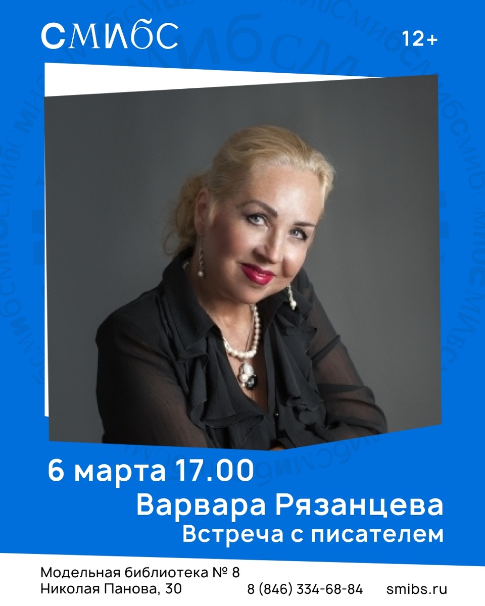 6 марта в 17:00 приглашаем на праздничную программу «Любимой маме» и встречу с писательницей Варварой Рязанцевой, приуроченную к празднованию Международного женского дня. Варвара Рязанцева — русский прозаик, член Союза писателей России с 2013 года, автор книг: «Стеклянный дом», «Однажды будет вечер голубой», «Блаженны плачущие», «Бирюльки», «Фиалки в горах», «Не как все» и других. Героини её прозы — сильные женщины, и, возможно, именно поэтому жизнь постоянно ставит их перед непростым выбором. В программе встречи: Место проведения: Библиотека № 8 (Николая Панова, 30). Вход свободный.